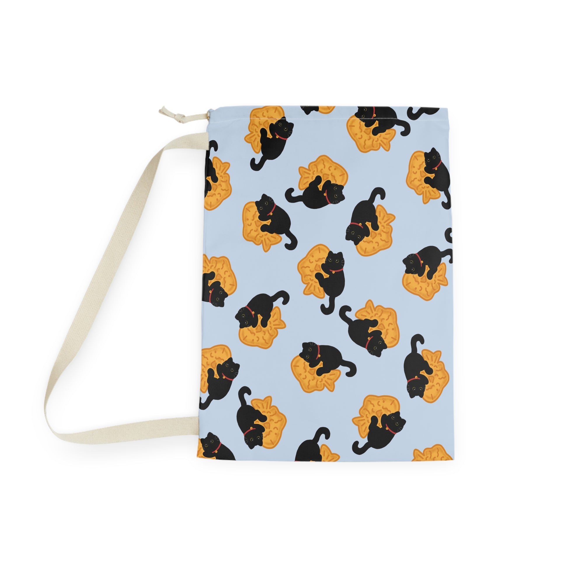 Baby Blue Black Cat Taiyaki Drawstring Bag