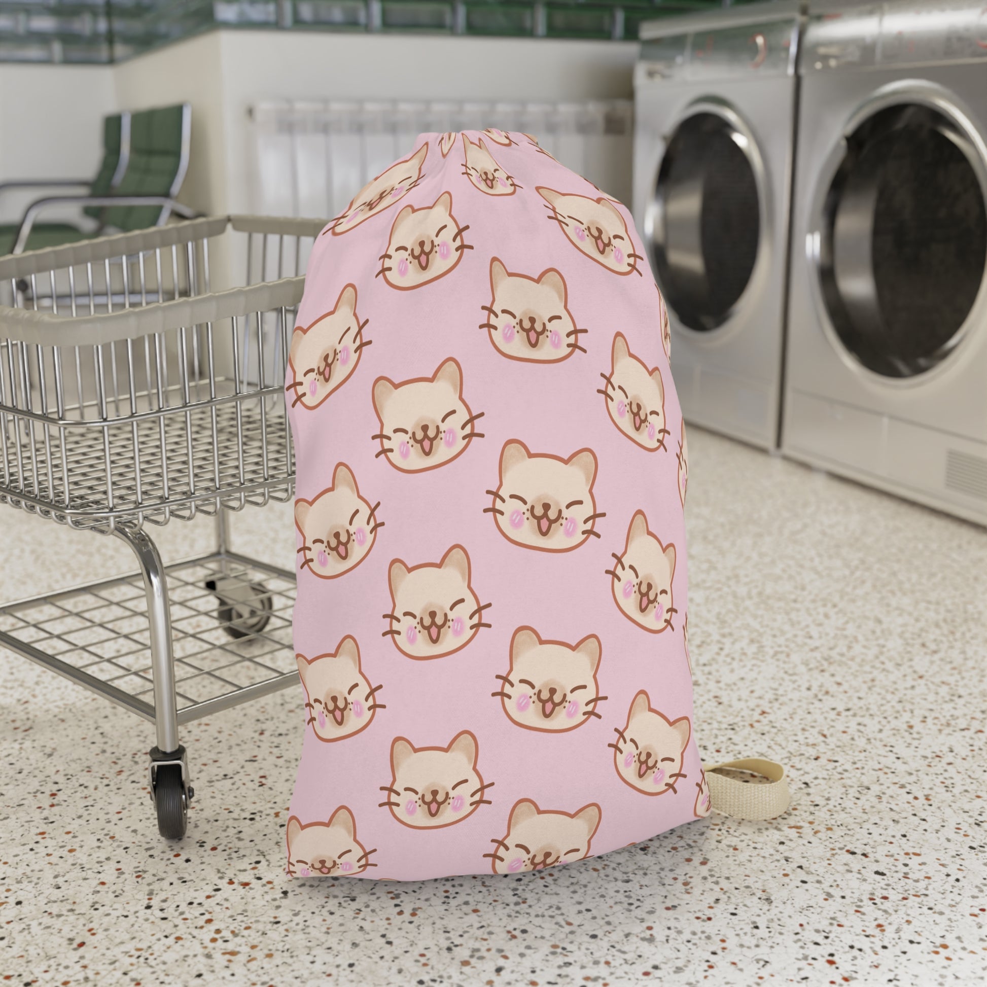 Baby Pink Kitty Kat Drawstring Bag